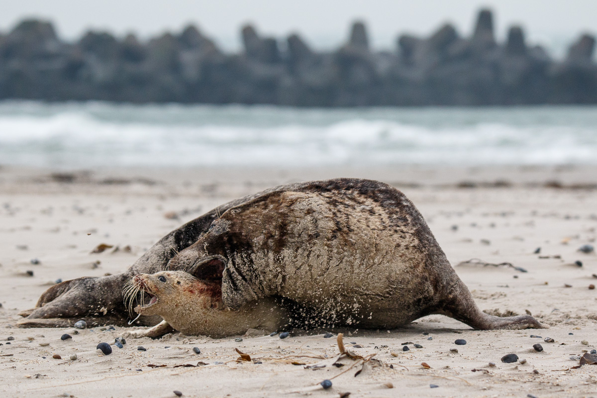 Auch dieses Jahr waren wir wieder zum Jahreswechsel auf Helgoland. Da kurz vor Weihnachten ein starker Sturm aus Nordwest blies, hatten sich die neugeborenen Kegelrobben leider sehr weit an die Dünen zurückgezogen. Dennoch hatten wir Glück mit dem Wetter und den Lichtbedingungen.
